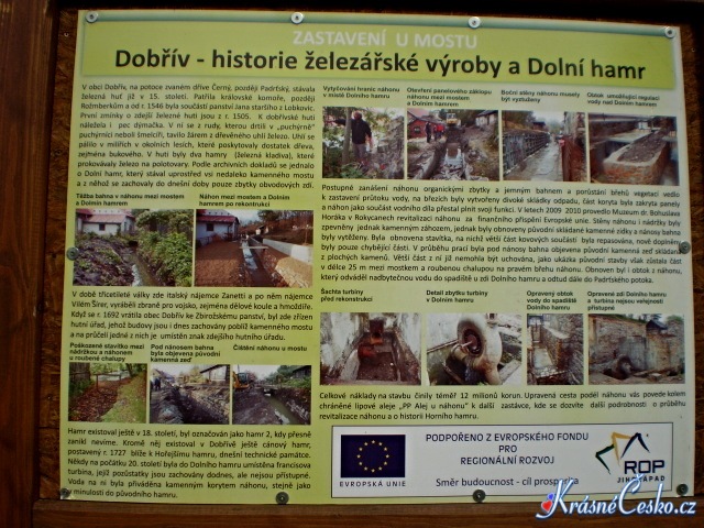 První písemná zpráva pochází z roku 1325.Vesnička je známá zejména díky vodnímu Hamru.V Dobřívě se vyrábělo železo od začátku 14 stol. do pol.20 stol.Existovaly zde prvotní výhně na přímou výrobu železa z rud.Vysoké pece / od r.1614 do roku 1817 /Dnešní zděná budova byla postavena začátkem 19 stol. na místě starších dřevěných hamrů z let 1658 a 1701.Strojní vybavení pochází z 19 stol. i z pozdější doby.